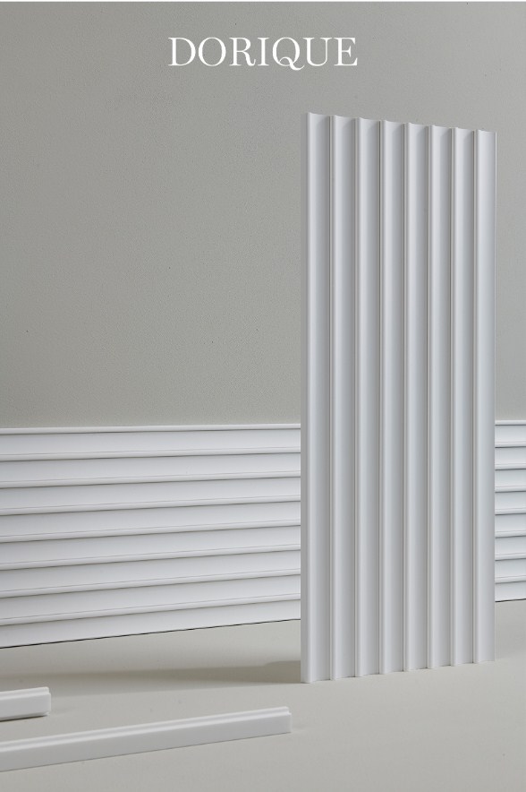 Стеновая панель NMC DORIQUE, созданная дизайнером Бертраном Лежоли, представляет собой новую интерпретацию классического узора, идеально вписывающуюся в современный интерьер. Полосы света и тени, чередующиеся вдоль вертикальных линий, создают игру контрастов и сложную геометрию. Эту 3D-панель можно использовать в сочетании с молдингами NMC FL11 и NMC WL10, а также с стеновыми панелями Canele S и L для создания уникальной композиции.