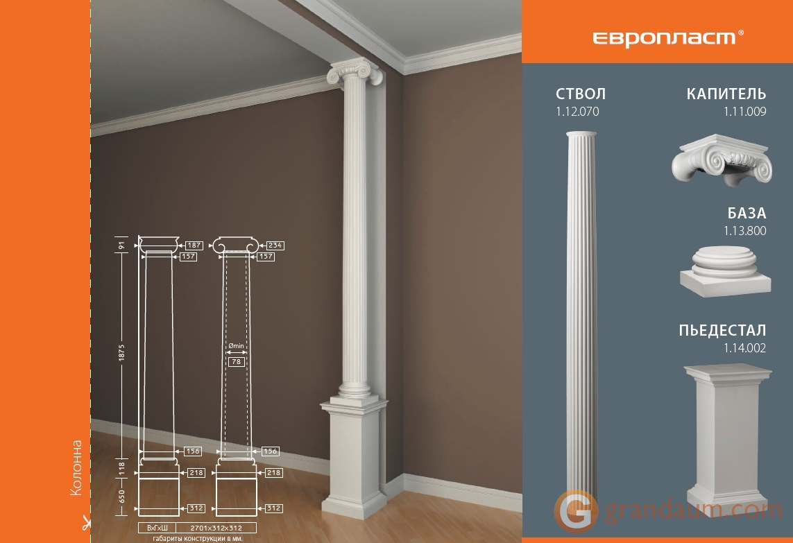 Создайте индивидуальный классический интерьер с помощью колонн из полиуретана. В классических домах, ресторанах и гостиницах колонны и полуколонны добавляют нотку элегантности и классического стиля. Прочный полиуретановый материал защищает от ударов и повреждений.