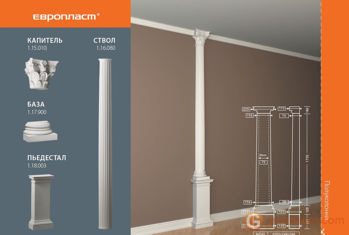 Создайте индивидуальный традиционный интерьер с помощью пилястр. В классических домах, ресторанах и гостиницах пилястры добавляют нотку элегантности и классического стиля. Прочный полиуретановый материал защищает от ударов и повреждений.