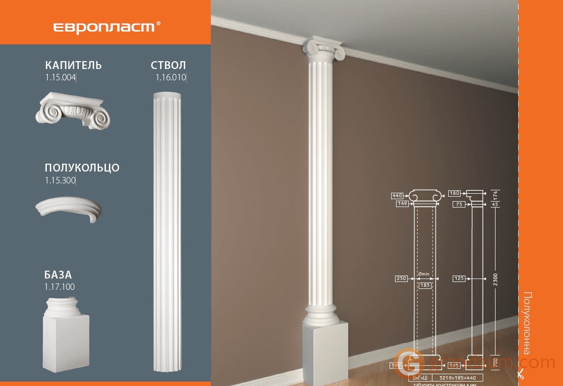 Создайте индивидуальный классический интерьер с помощью колонн из полиуретана. В классических домах, ресторанах и гостиницах колонны и полуколонны добавляют нотку элегантности и классического стиля. Прочный полиуретановый материал защищает от ударов и повреждений.