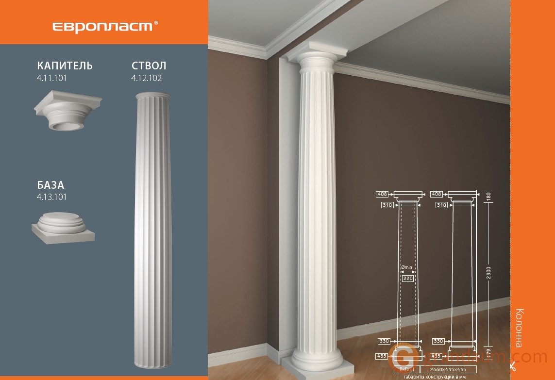 Создайте индивидуальный классический интерьер с помощью колонн из полиуретана. В классических домах, ресторанах и гостиницах колонны и полуколонны добавляют нотку элегантности и классического стиля. Прочный полиуретановый материал защищает от ударов и повреждений.