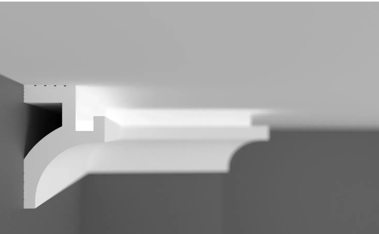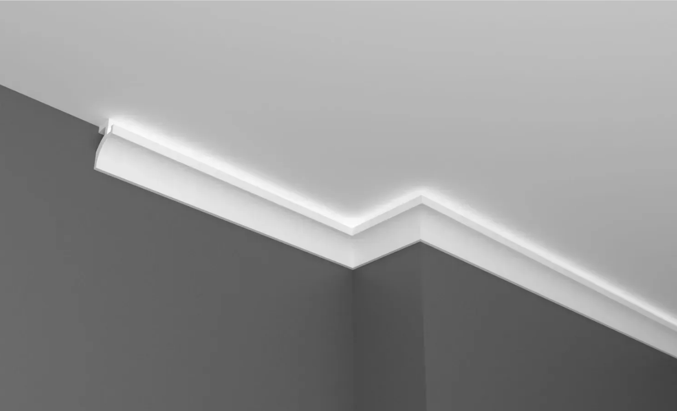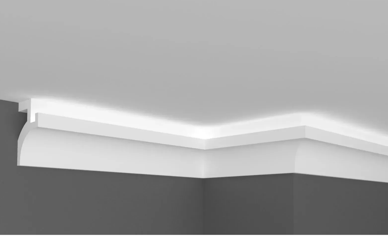 Создайте индивидуальный интерьер, тёплую и уютную атмосферу с помощью карнизов для скрытого освещения из полиуретана и дюрополимера. Карнизы под LED скрытое освещение можно размещать на стене под разными углами, чтобы изменить направление света в интерьере. Благодаря легкому, но прочному материалу установка не представляет сложности. Существует множество возможностей применения, позволяющих создавать уникальные и динамичные интерьеры.