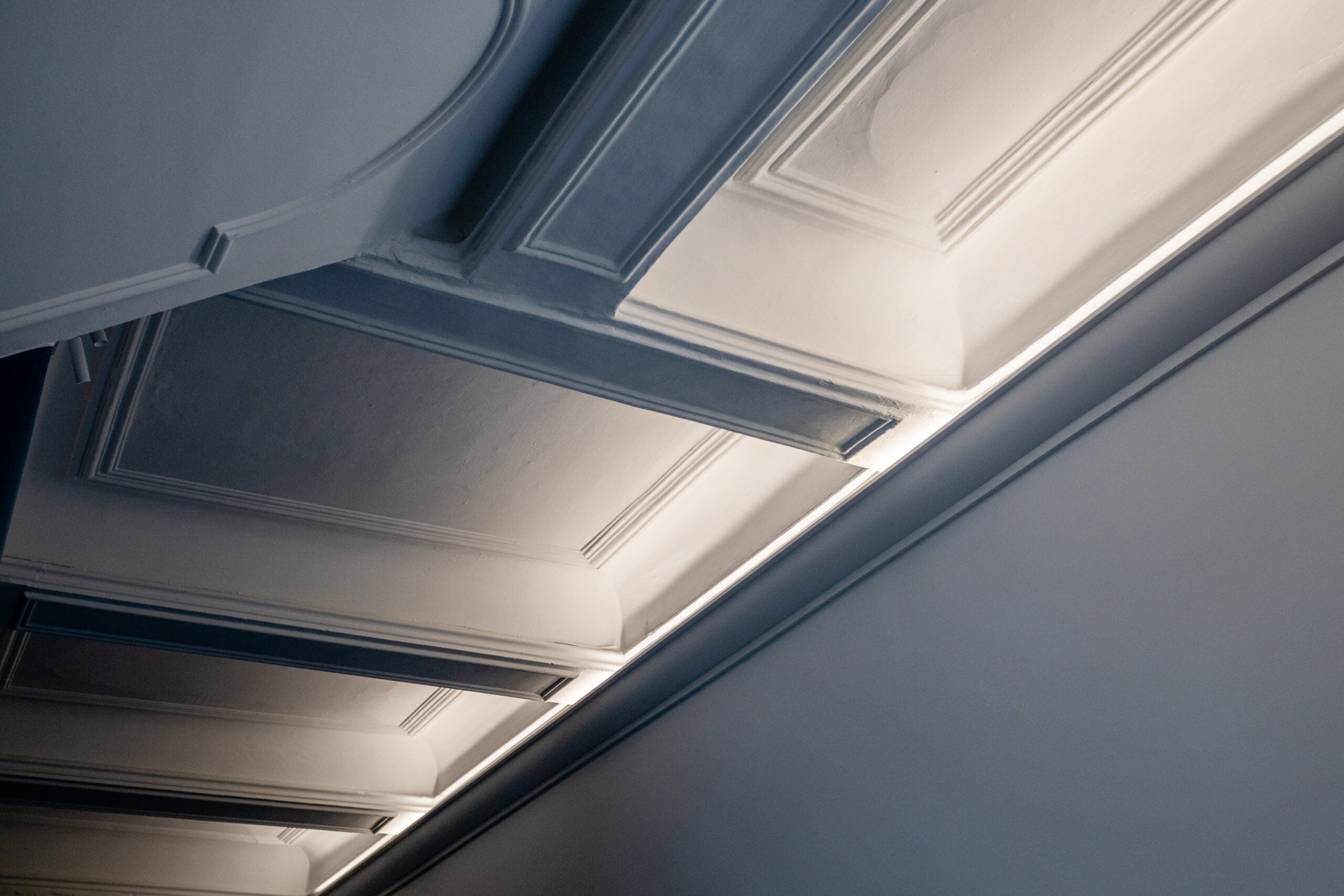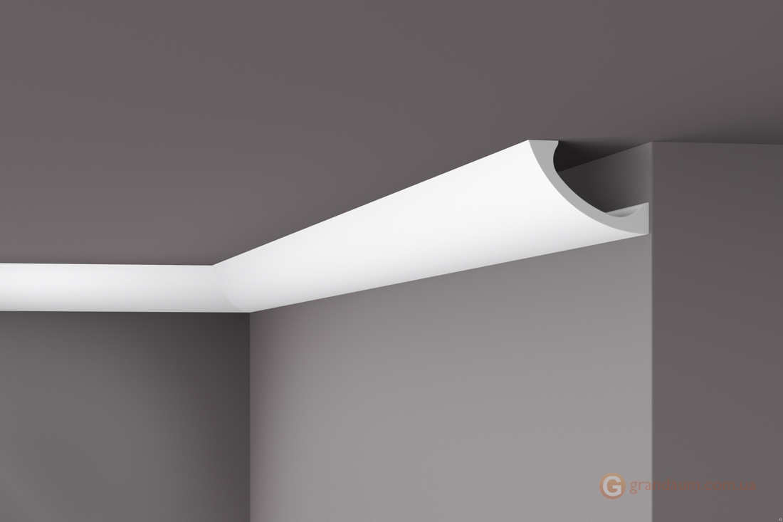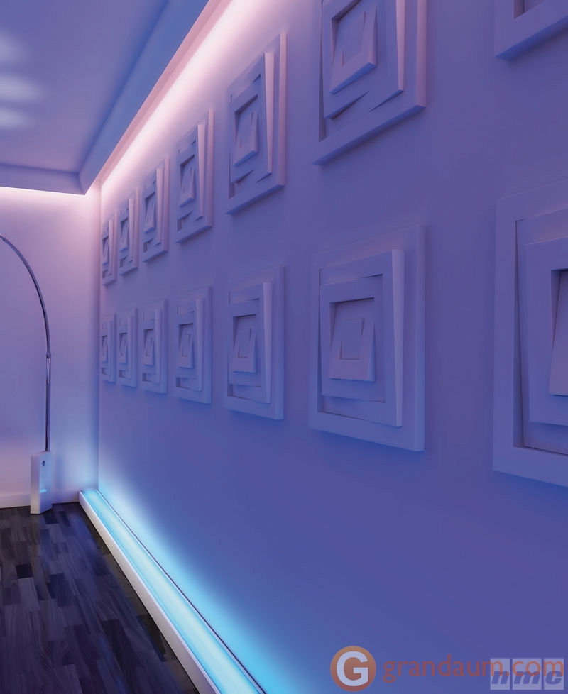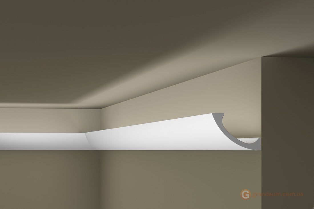 Карниз поставляется загрунтованными и готовым к окончательной покраске. С обратной стороны карниза WALLSTYL® WT3 есть место для светодиодных лент. В зависимости от расположения за молдингом также остается пространство для скрытия проводки или несовершенств, трещин.