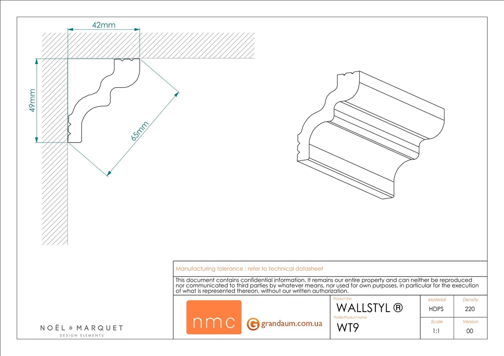 Для установки карниза NMC WT9 требуется монтажный клей NMC Adefix P5 и стыковочный клей (по желанию клиента) NMC Adefix Plus или Orac decor Decofix FX400. Количество клея Вам поможет рассчитать наш специалист.