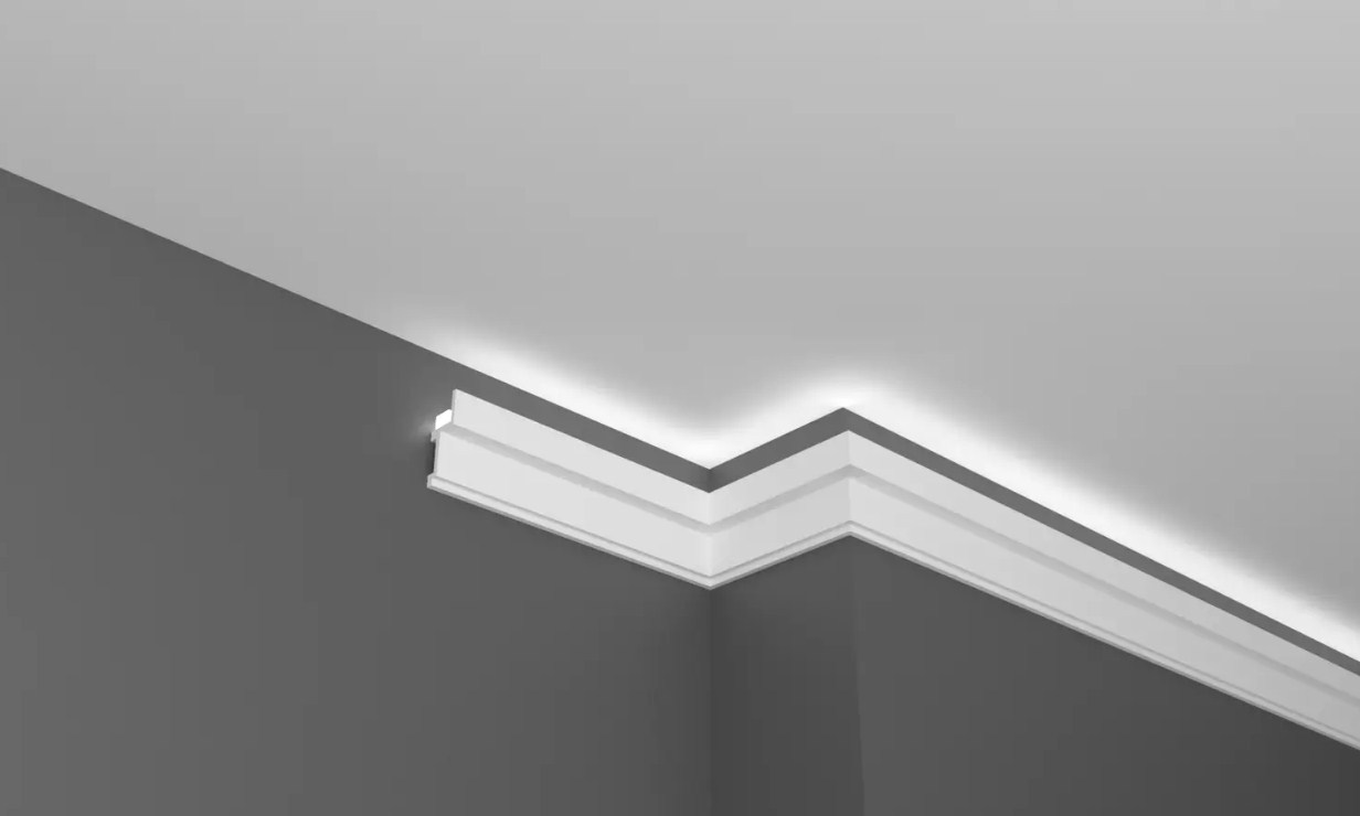 Создайте индивидуальный интерьер, тёплую и уютную атмосферу с помощью карнизов для скрытого освещения из полиуретана и дюрополимера. Карнизы под LED скрытое освещение можно размещать на стене под разными углами, чтобы изменить направление света в интерьере. Благодаря легкому, но прочному материалу установка не представляет сложности. Существует множество возможностей применения, позволяющих создавать уникальные и динамичные интерьеры.