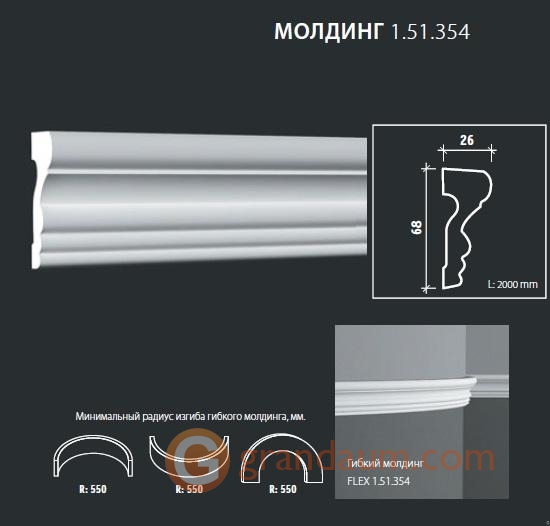 Для установки гибкого молдинга Европласт 1.51.354 (М-354) требуется монтажный клей NMC Adefix P5 и стыковочный клей (по желанию клиента) NMC Adefix Plus или Orac decor Decofix Pro FX200/210. Количество клея Вам поможет рассчитать наш специалист.