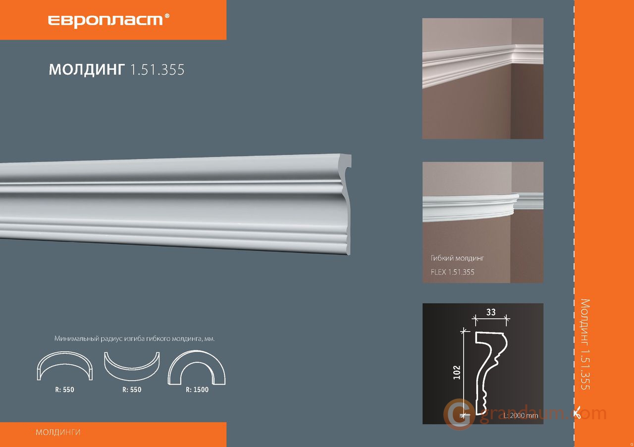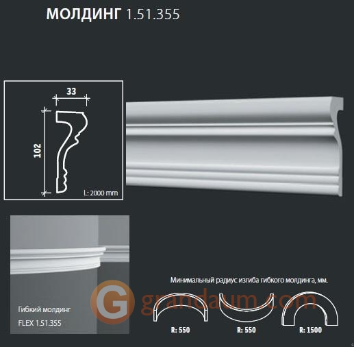 Для установки гибкого молдинга Европласт 1.51.355 (М-355) требуется монтажный клей NMC Adefix P5 и стыковочный клей (по желанию клиента) NMC Adefix Plus или Orac decor Decofix Pro FX200/210. Количество клея Вам поможет рассчитать наш специалист.