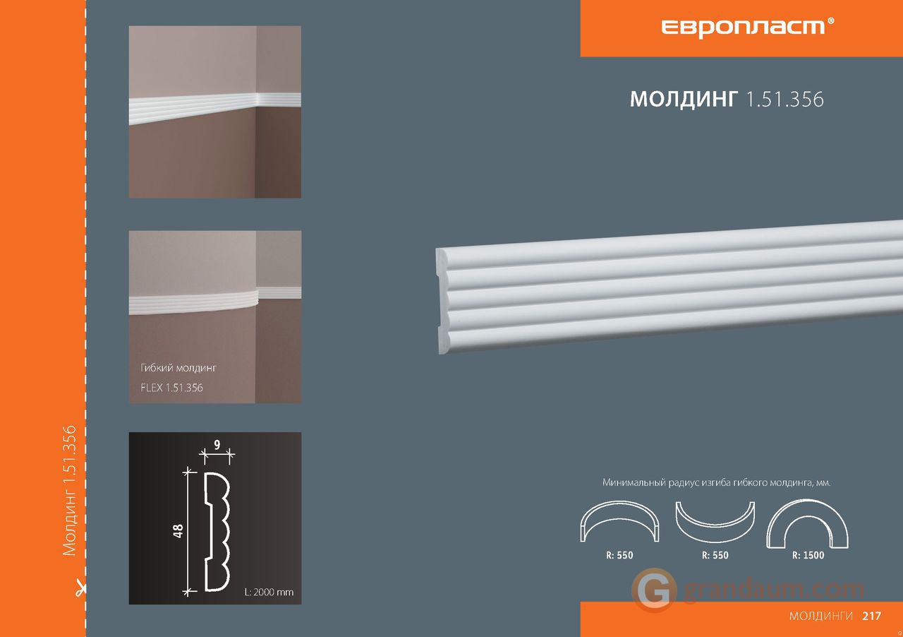 Для установки молдинга с гладким профилем Европласт 1.51.356 (М-356) требуется монтажный клей NMC Adefix P5 и стыковочный клей (по желанию клиента) NMC Adefix Plus или Orac decor Decofix Pro FX200/210. Количество клея Вам поможет рассчитать наш специалист.