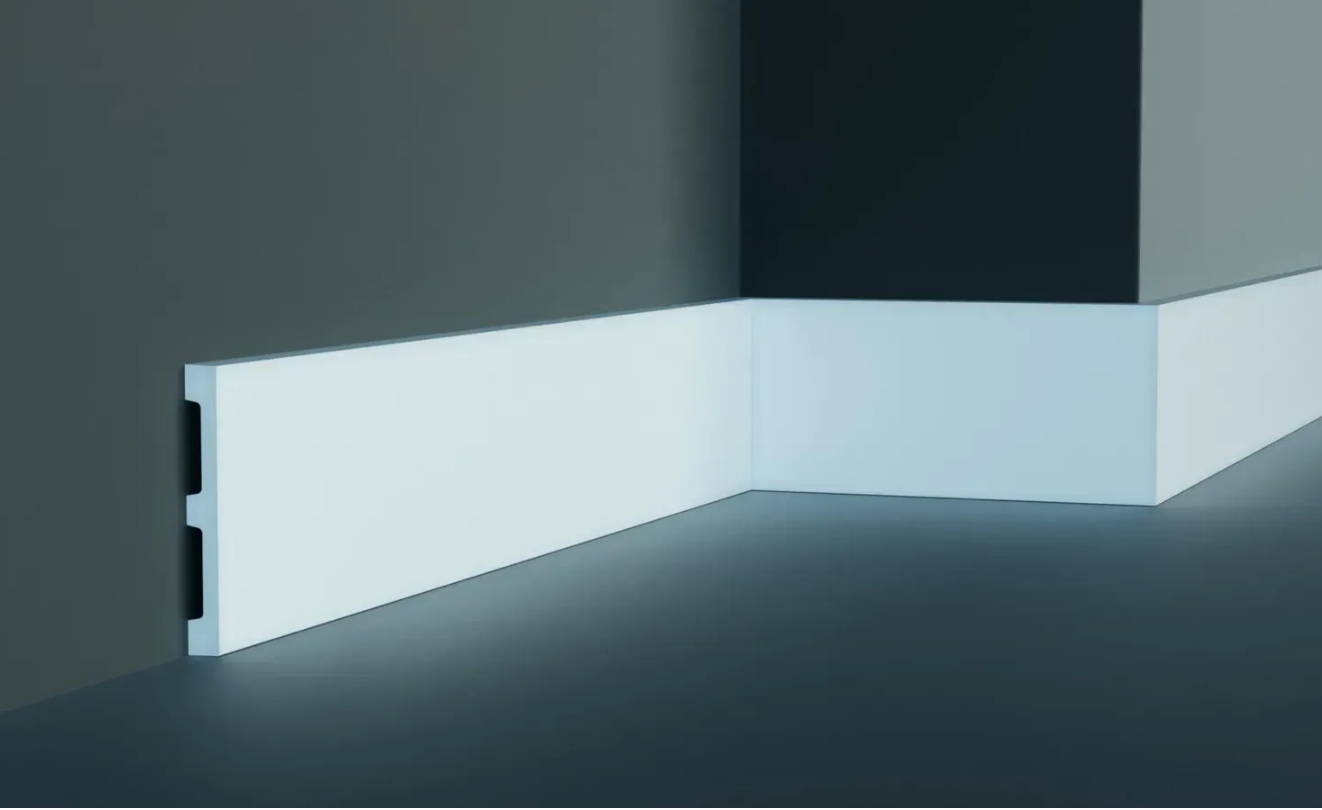 Украсьте свой интерьер пристенным гибким напольным плинтусом. Он обеспечивает плавный и гладкий переход между стеной и полом независимо от напольного покрытия, добавляя завершающий штрих интерьеру. Гибкий плинтус позволяет декорировать стены даже округлой формы. Плинтус визуально привлекателен и практичен благодаря своим ударопрочным свойствам, защищающим от повреждений. В современных модерн интерьерах, а так же в неоклассике такие профили формируют четкие линии, характерные для дизайна. Материал эластичен, при этом очень прочный и универсальный. Напольный плинтус производится загрунтованным и готовыми к покраске.