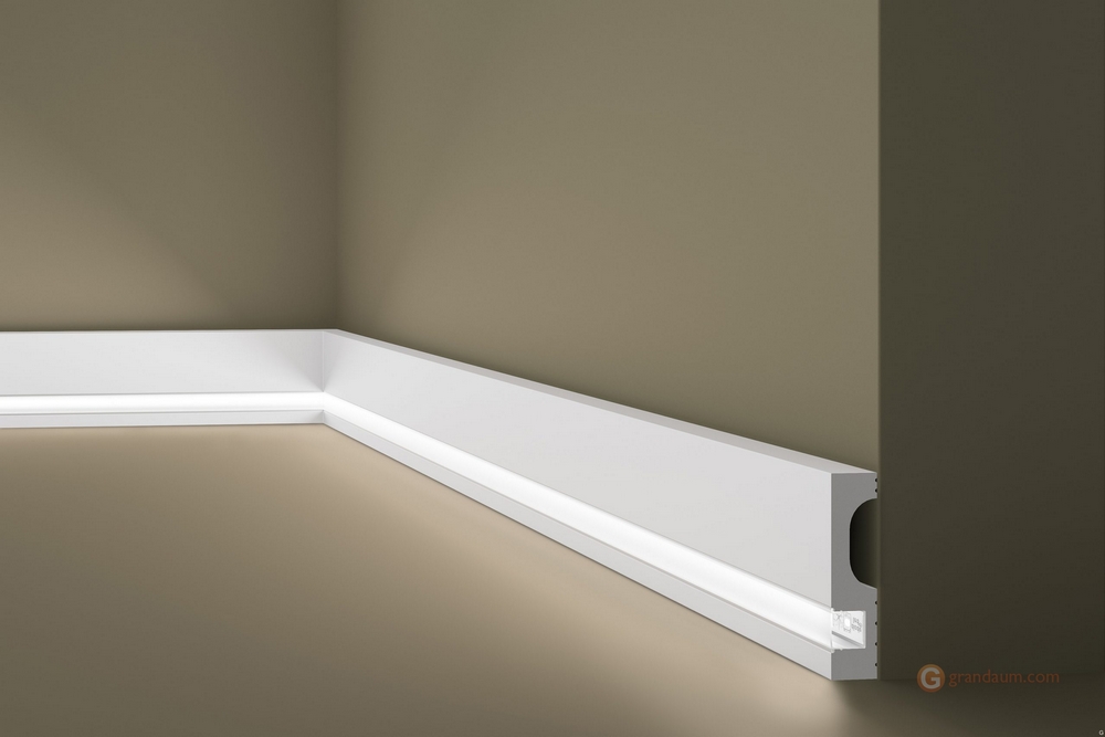 Современный плинтус NMC IL11 разработан скрытого светодиодного освещения. Непрямое светодиодное освещение создает уютную и домашнюю атмосферу и зрительно увеличивает помещение. Эффект освещения может полностью изменить внешний вид помещения. Помимо визуальных преимуществ, IL11 защищает стены от ударов, потертостей и повреждений.