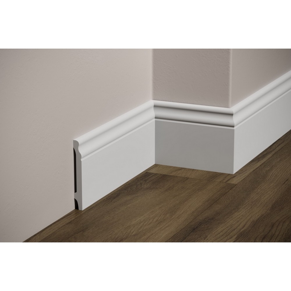 Украсьте свой интерьер пристенным гладким напольным плинтусом. Он обеспечивает плавный и гладкий переход между стеной и полом независимо от напольного покрытия, добавляя завершающий штрих интерьеру. Плинтус визуально привлекателен и практичен благодаря своим ударопрочным свойствам, защищающим от повреждений. В современных модерн интерьерах, а так же в неоклассике такие профили формируют четкие линии, характерные для дизайна. Прочный материал защищает от ударов и повреждений. Напольный плинтус производится загрунтованным и готовыми к покраске.