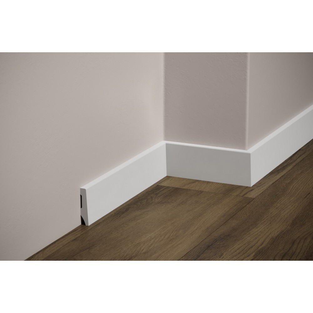 Украсьте свой интерьер пристенным гладким напольным плинтусом. Он обеспечивает плавный и гладкий переход между стеной и полом независимо от напольного покрытия, добавляя завершающий штрих интерьеру. Плинтус визуально привлекателен и практичен благодаря своим ударопрочным свойствам, защищающим от повреждений. В современных модерн интерьерах, а так же в неоклассике такие профили формируют четкие линии, характерные для дизайна. Прочный материал защищает от ударов и повреждений. Напольный плинтус производится загрунтованным и готовыми к покраске.