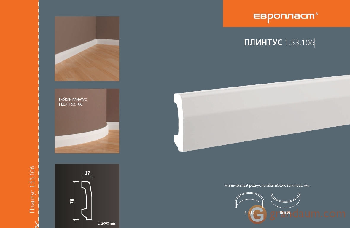 Для установки напольного плинтуса с гладким профилем Европласт 1.53.106 (ПЛ-106) требуется монтажный клей NMC Adefix P5 и стыковочный клей (по желанию клиента) NMC Adefix Plus или Orac decor Decofix Pro FX200/210. Количество клея Вам поможет рассчитать наш специалист.