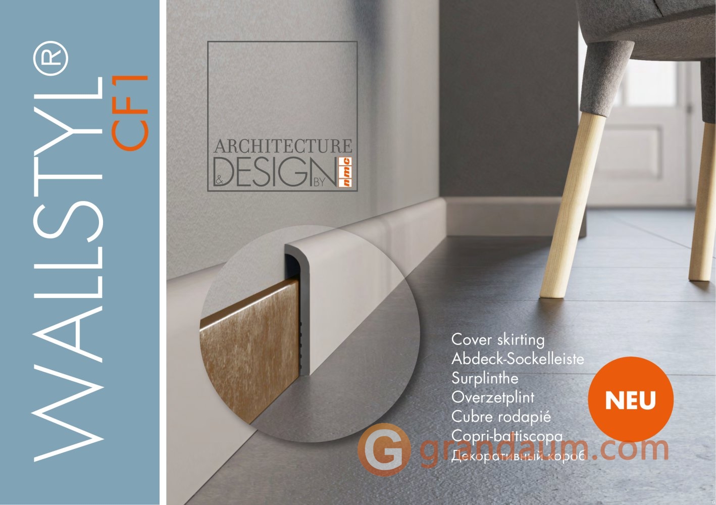 Сэкономьте время, деньги и уберегите себя от непредвиденных повреждений стен используя плинтус NMC CF1 WALLSTYL® поверх старого. плинтуса. Поиграйте с элегантностью и сдержанностью, включив гладкую форму CF1 WALLSTYL® в интерьер. С эстетической точки зрения накладной плинтус CF1 WALLSTYL® обеспечивает гармоничный переход между стеной и полом.