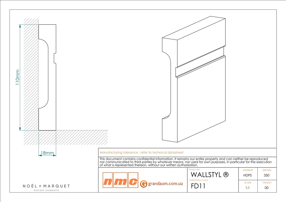 FD11 устойчив к влаге и идеально подходит для влажных ванных комнат и кухонь. FD11 поставляется загрунтованным и готовым к покраске в окончательный цвет. С обратной стороны плинтуса есть узкая щель для скрытия мелкой проводки или несовершенных переходов.