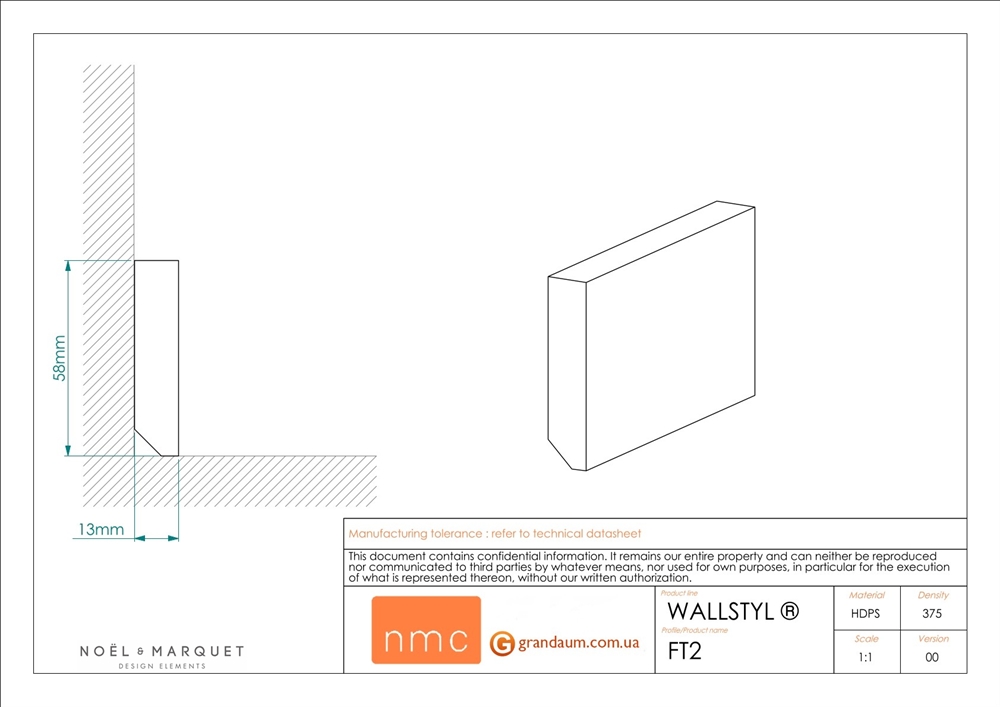 NMC FT2 WALLSTYL® - двусторонний плинтус с упрощенной формой. FT2 можно использовать в качестве плинтуса или универсального молдинга. FT2 придаст изысканность в современный дизайн.