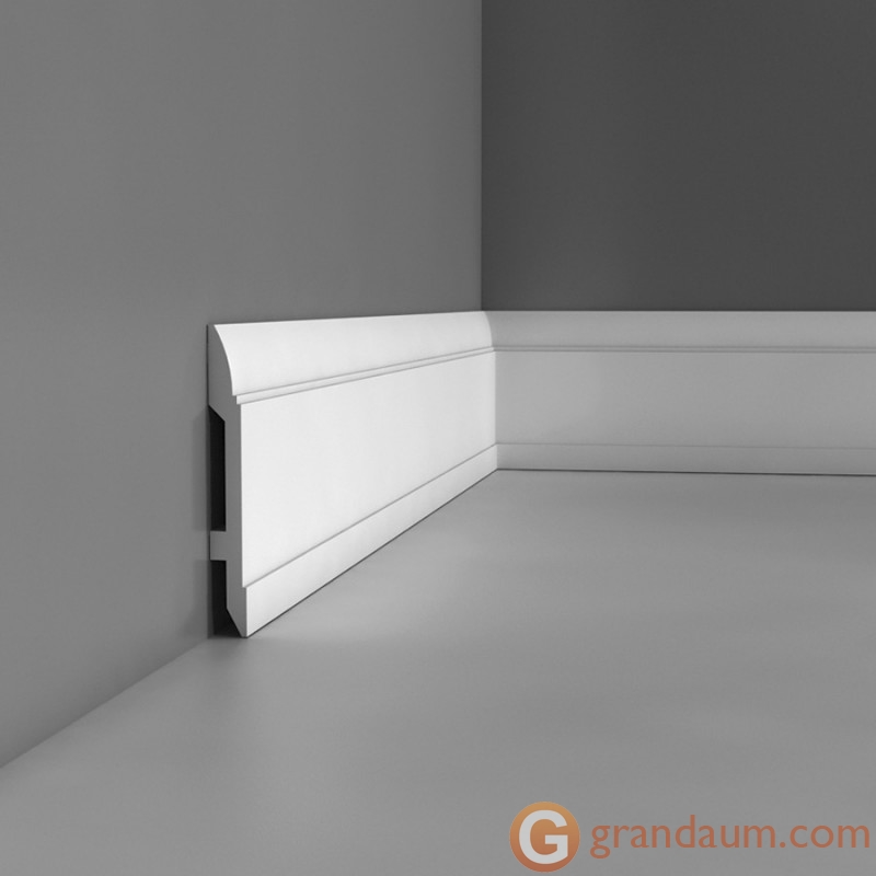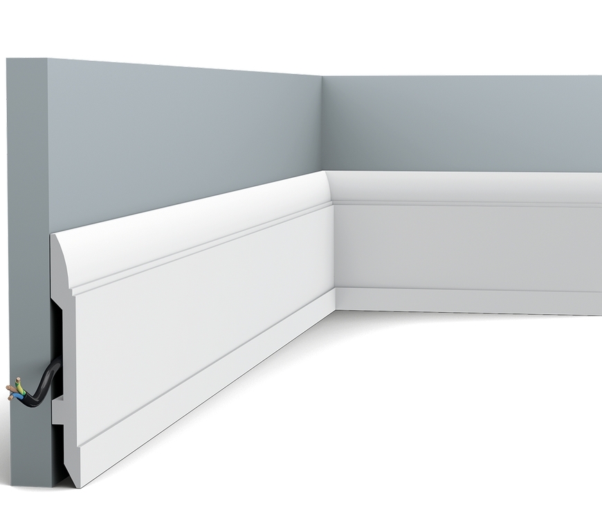 Современный плинтус с линейным рисунком. Сдержанный дизайн этого плинтуса делает его подходящим для различных стилей дизайна интерьера.