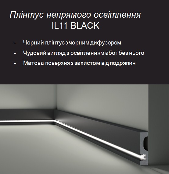 Преимущества плинтуса IL11 BLACK WALLSTYL® для скрытого освещения: