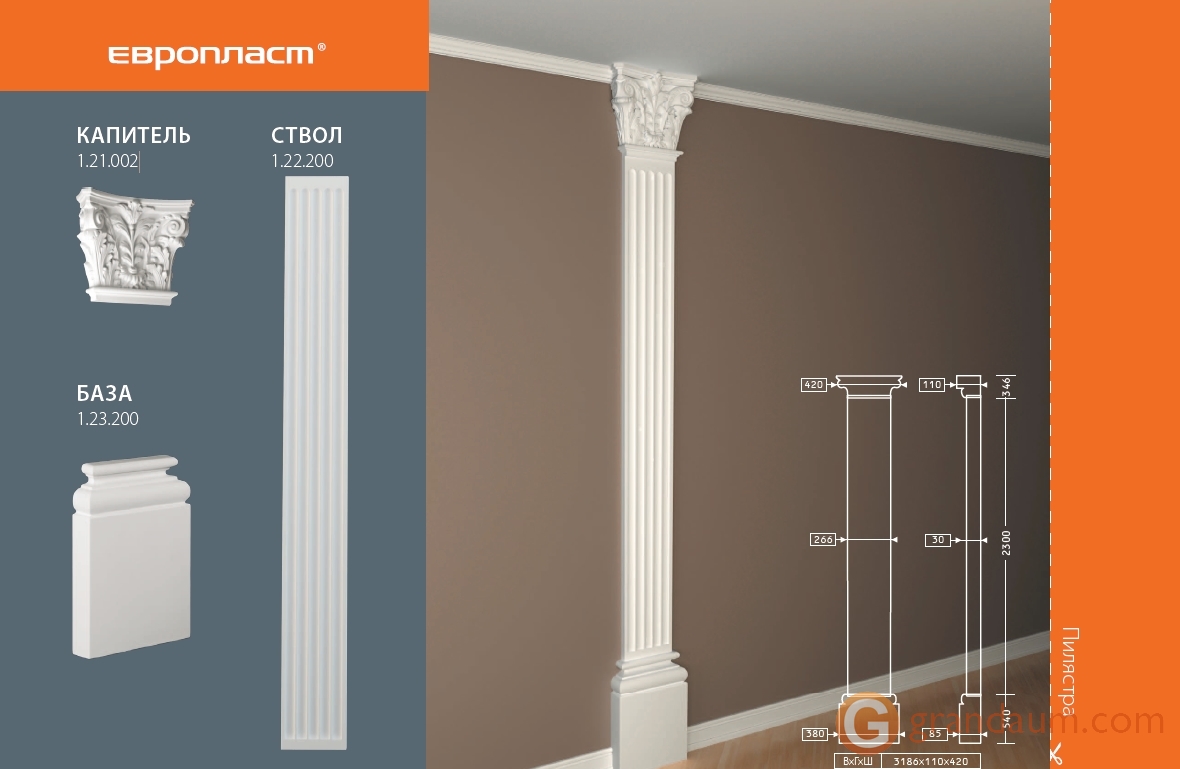 Создайте индивидуальный традиционный интерьер с помощью пилястр. В классических домах, ресторанах и гостиницах пилястры добавляют нотку элегантности и классического стиля. Прочный полиуретановый материал защищает от ударов и повреждений.