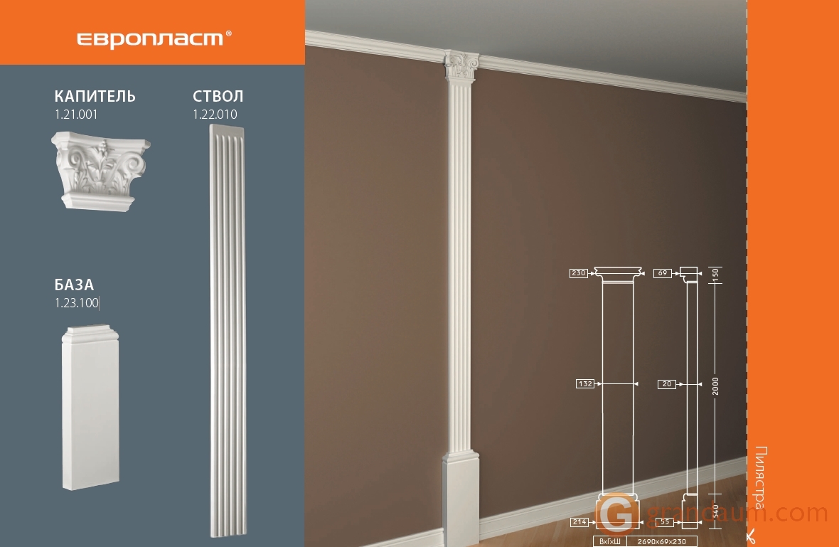 Создайте индивидуальный традиционный интерьер с помощью пилястр. В классических домах, ресторанах и гостиницах пилястры добавляют нотку элегантности и классического стиля. Прочный полиуретановый материал защищает от ударов и повреждений.