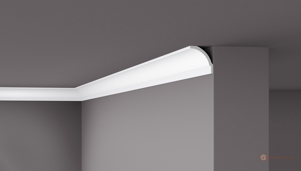С плавным изгибом и геометрической кромкой потолочный плинтус NMC BW1 является идеальным выбором для стильной отделки. Закругленный профиль BW1 создает элегантное затенение, которое придает помещению объем. Полистирол устойчив к влаге, что делает BW1 подходящим для влажных ванных комнат, баров и кухонь.