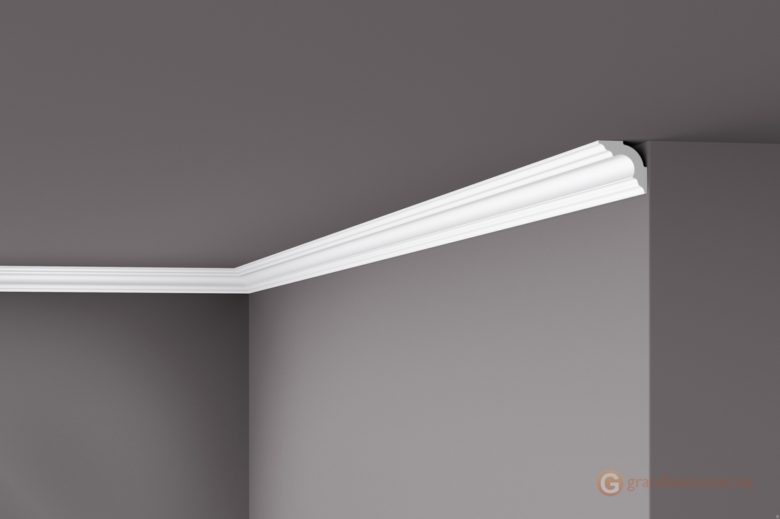 В этом классическом потолочном плинтусе есть линии, которые добавляют текстуру комнате. Карниз A3 NOMASTYL® маленького размера и не занимает много места на стене. Центральная кривая создает небольшое затенение. Полистирол устойчив к влаге, поэтому A3 подходит для влажных помещений, таких как ванные комнаты и кухни.