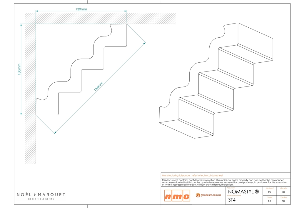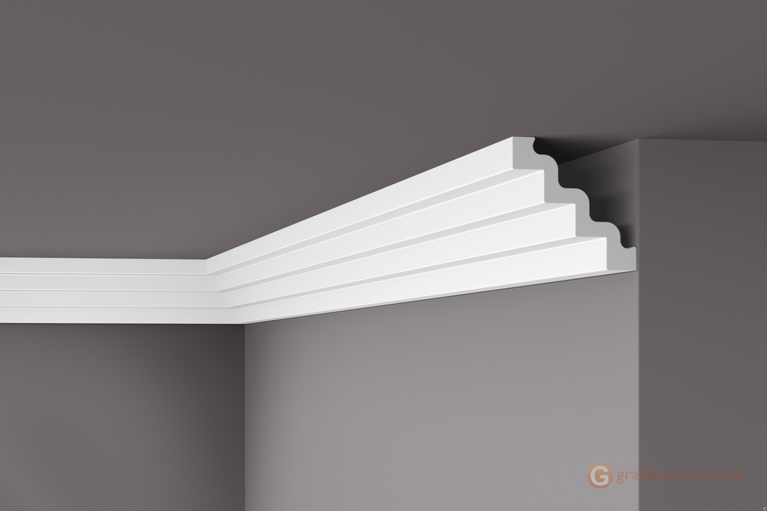 Потолочный плинтус NMC ST4 NOMASTYL® имеет кубическую градуированную форму, которая подчеркивает креативность помещения. Из-за формы карниза появляются четкие линии и тени, которые придают комнате текстуру и объем.