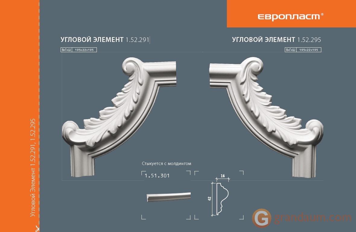 • Модель:  Угловые элементы и вставки Европласт 1.52.291 Уголок У-295 Правый